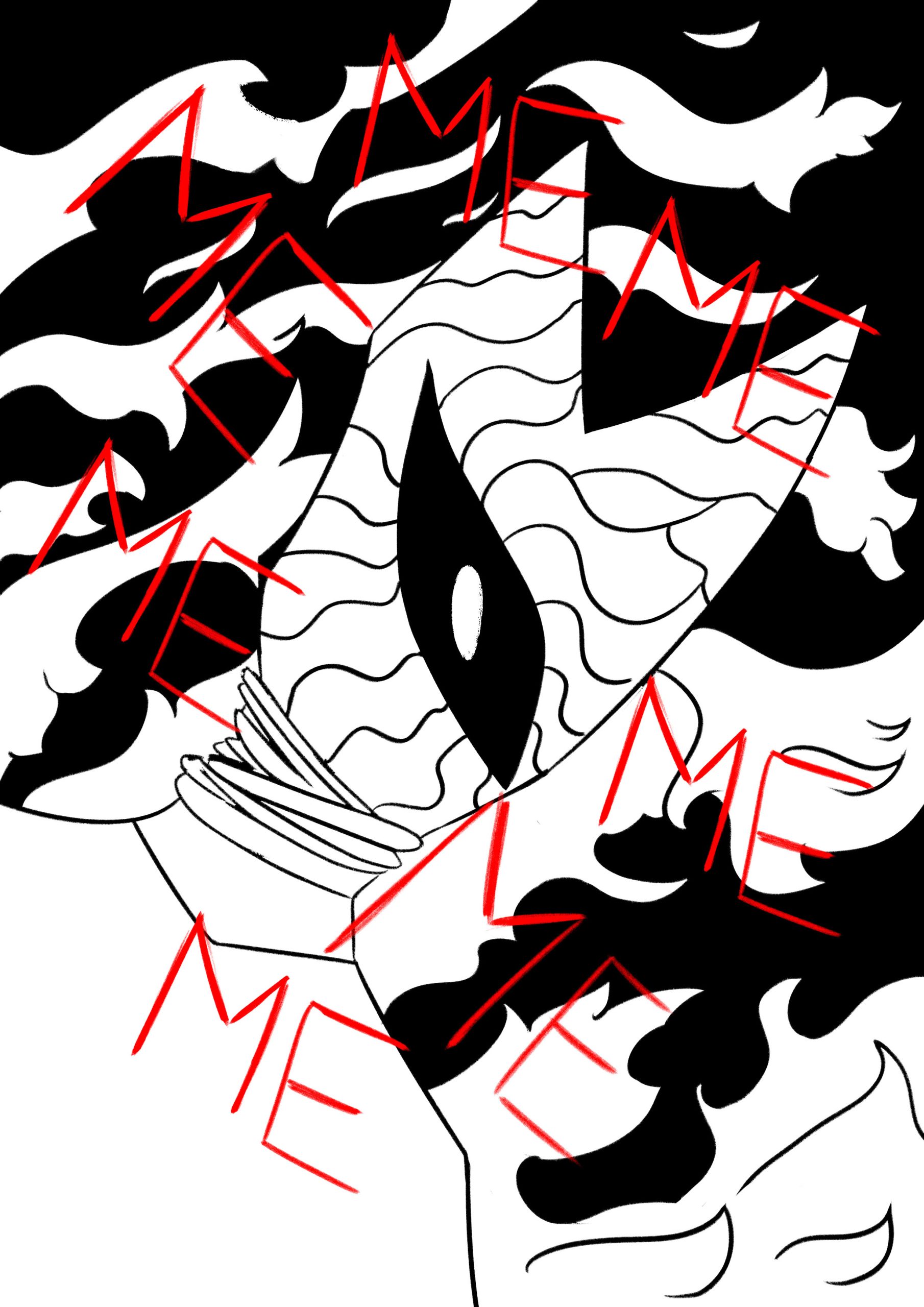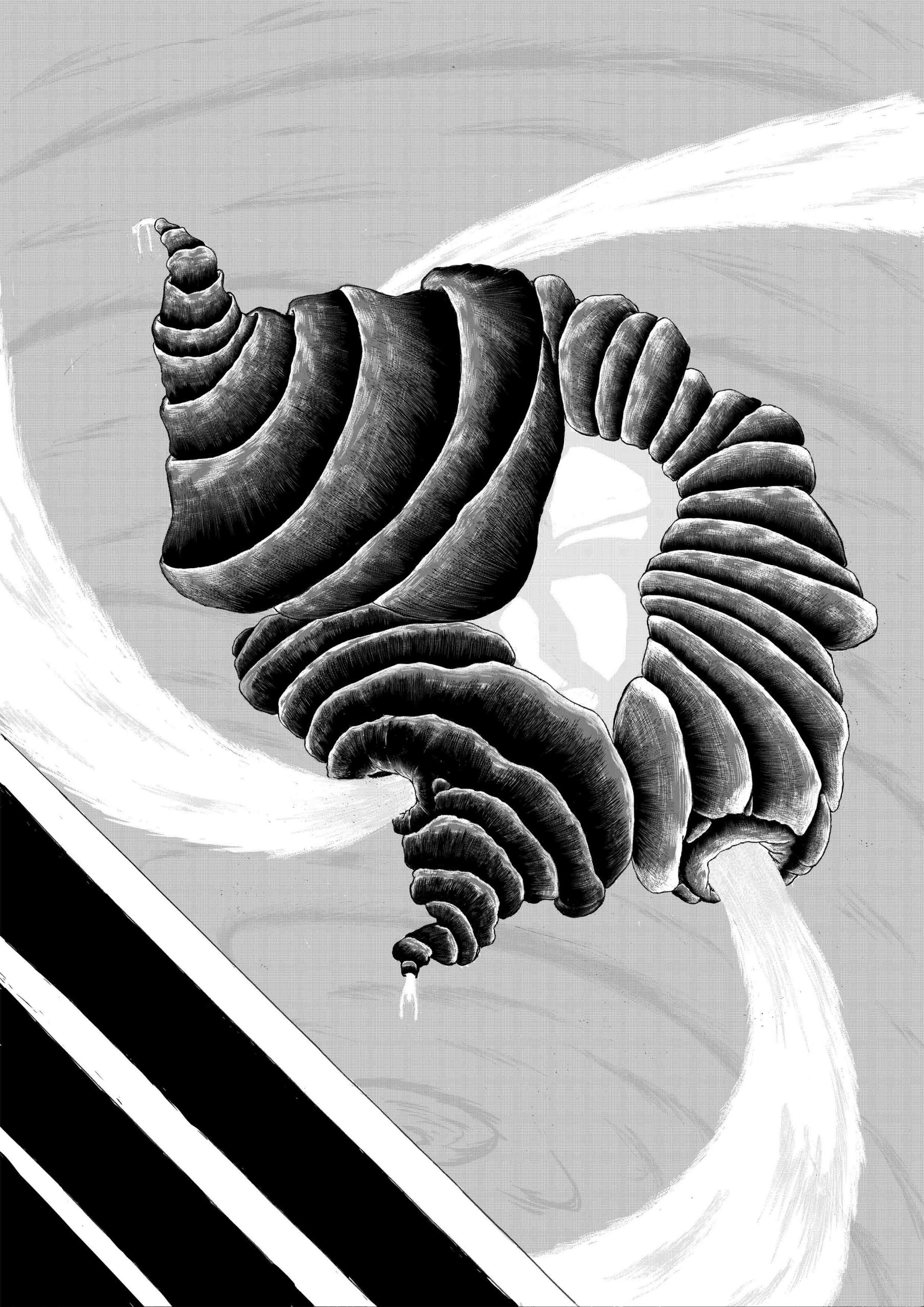La terza lotta – pennino nero ed olio su tela, 50×70 cm