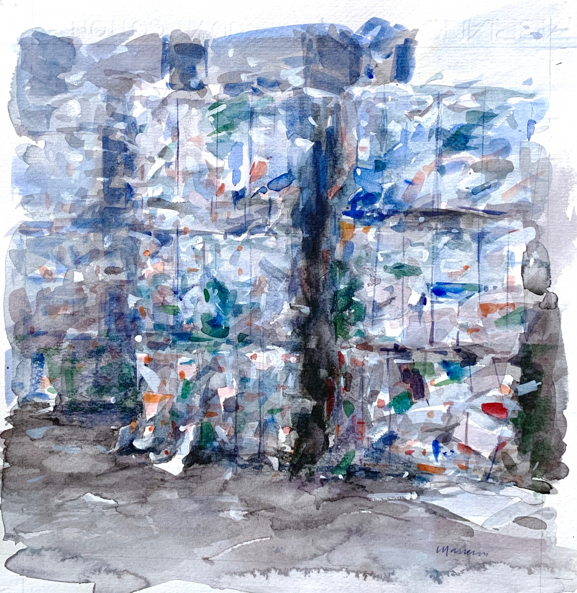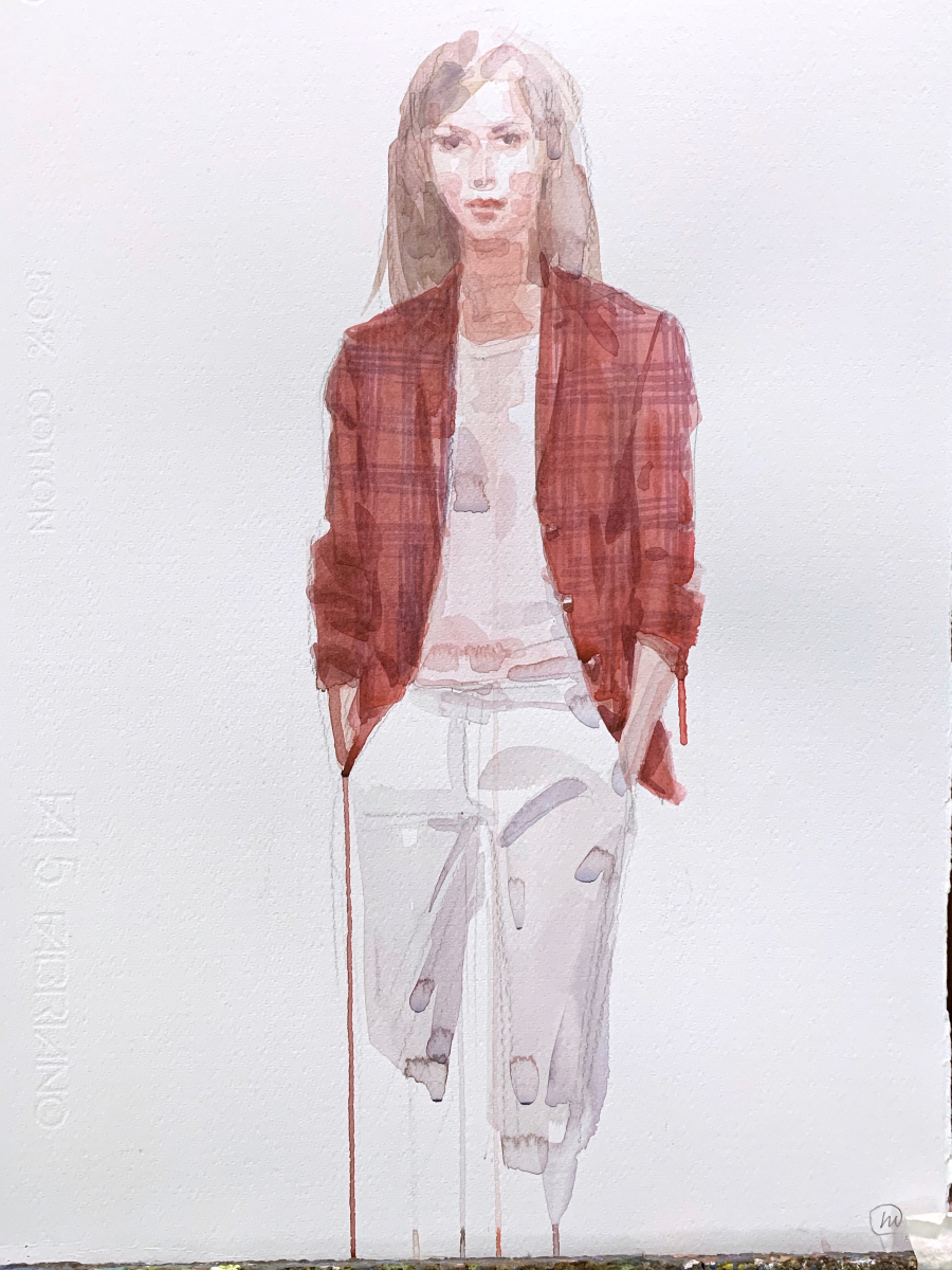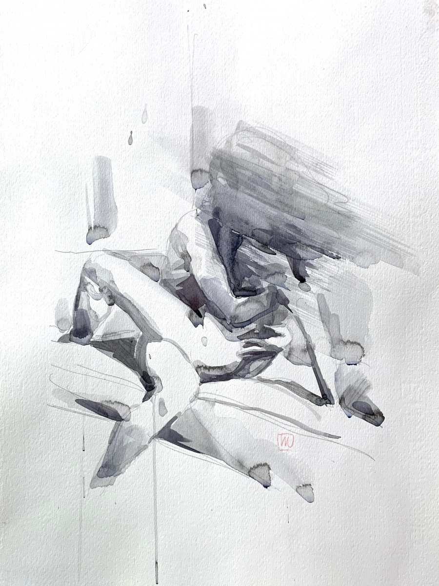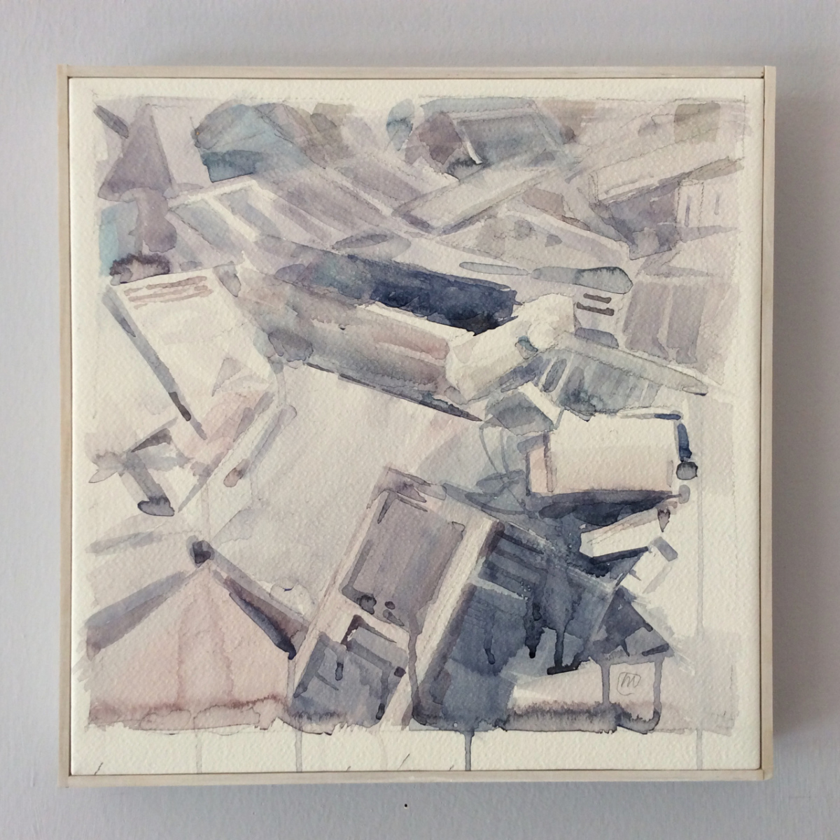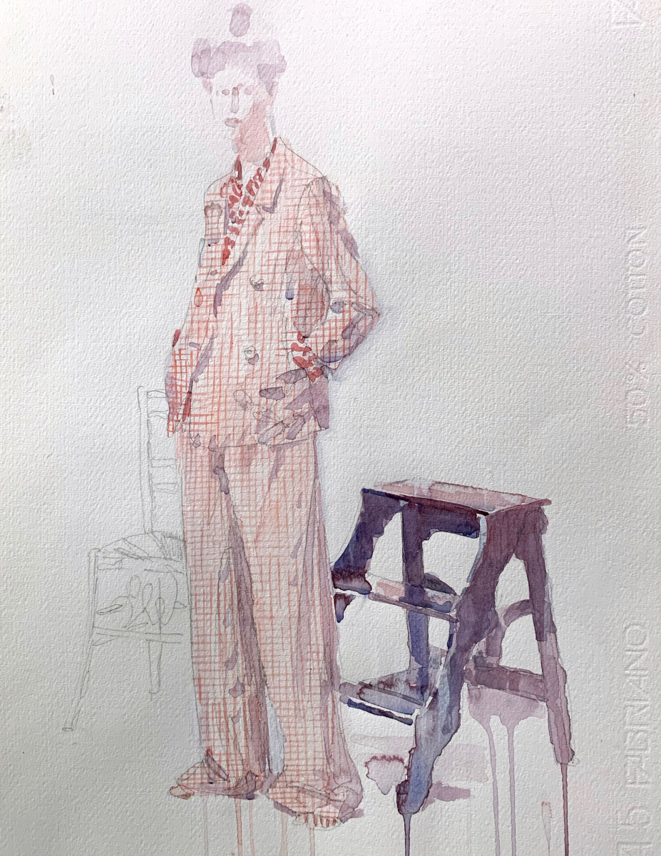 L’acquerello, per me, è la tecnica della leggerezza. Sin dai primi approcci l’ho sentito in sintonia con la mia maniera veloce e d’impressione, spesso volutamente non-finita. Forse per questo l’ho sempre preferito. Per l’immediatezza di espressione per raccontare un’emozione o per fermare l’attimo alla stessa velocità del pensiero. Con l’acquerello ho illustrato alcuni momenti del mio percorso artistico come fossero appunti scritti di getto. Talvolta sono stati frutto di mirati studi preliminari per arrivare a “quel” gesto, puro, estetico e sintetico (è il caso degli acquerelli creati per la moda o alle serie dei cantieri e degli accumuli). Ma la maggior parte di queste carte sono più spesso pezzi unici, non ripetuti, non studiati, quasi nel rispetto di un “ora e subito” che rendesse in un colpo solo l’estasi visionaria di un’immagine senza tanti filtri ma così, come mi veniva. Alla prima. Perché l’acquerello non ti consente pentimenti, e io – di lui – non mi sono mai pentito.