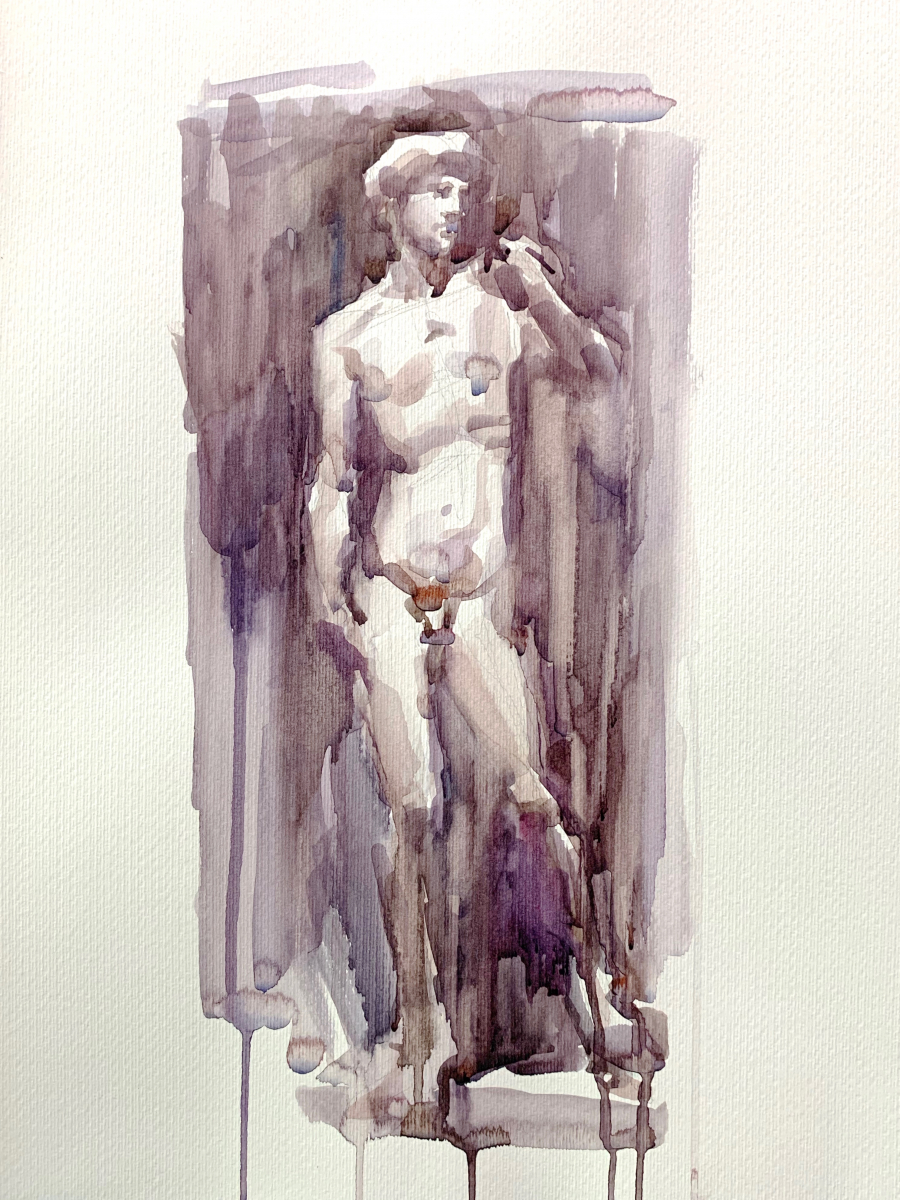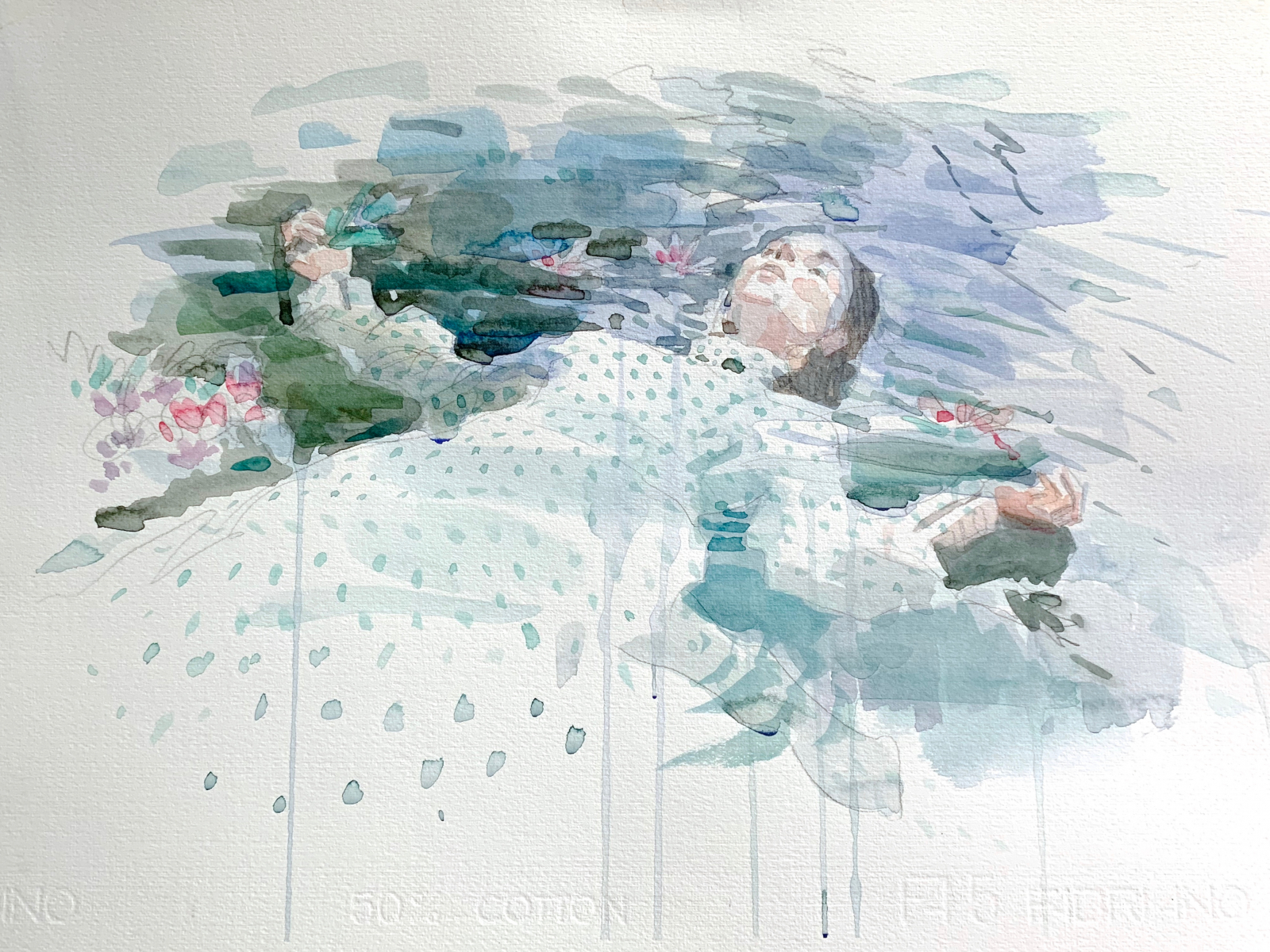 Non avrai mai due sfumature uguali, non sai mai dove e come sarà “la macchia” asciugando sulla carta… In altre parole l’acquerello non lo puoi controllare e devi imparare a lasciarti sorprendere dalla sua magia prima di dominarlo. Chi lo ha usato anche solo per diletto sa quanto questa proprietà spaventi e risulti frustrante al principiante come all’artista più consumato.